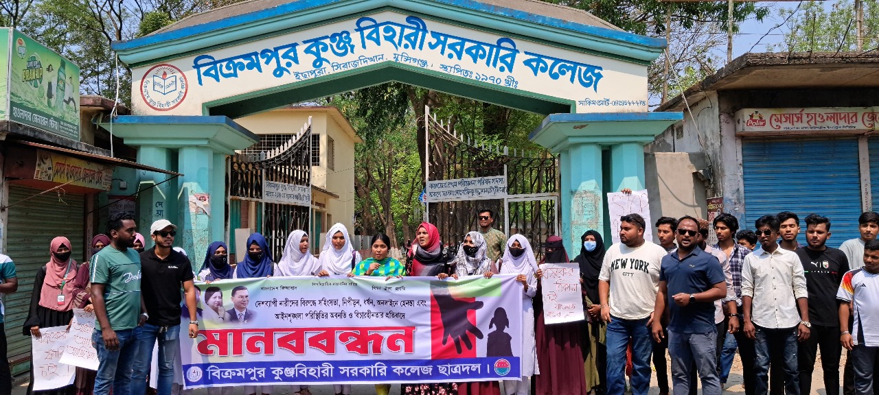সিরাজদিখানে ধর্ষকের সর্বোচ্চ শাস্তি মৃত্যুদন্ডের দাবিতে ছাত্রদলের মানববন্ধন