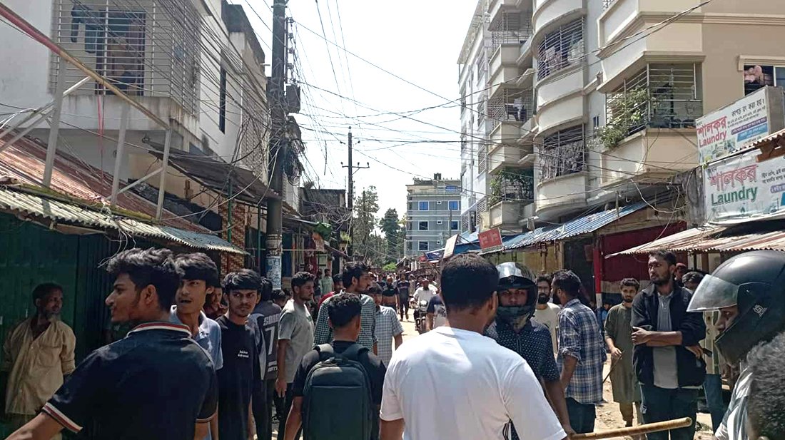 দুই পক্ষের মধ্যে থেমে থেমে পাল্টাপাল্টি ধাওয়া ও ইটপাটকেল নিক্ষেপের ঘটনা ঘটে। শিক্ষার্থীদের হাতে রড, পাইপ, কাঠের লাঠি ও পাথর এবং স্থানীয়দের হাতে রামদা, রড ও পাইপ দেখা গেছে। সংঘর্ষে ২ নম্বর গেট সংলগ্ন এলাকা রণক্ষেত্রে পরিণত হয়।