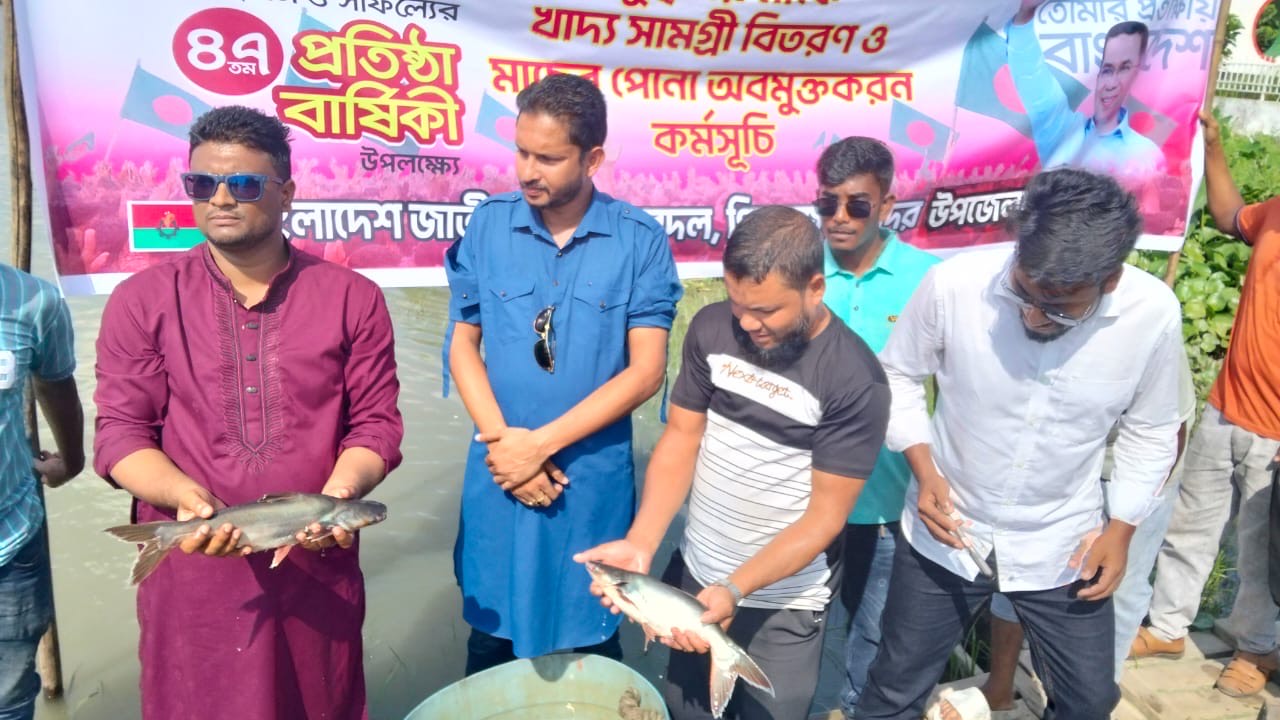 পিরোজপুরে যুবদলের প্রতিষ্ঠাবার্ষিকীতে দুস্থদের মাঝে খাদ্য বিতরণ ও মাছের পোনা অবমুক্তকরণ
