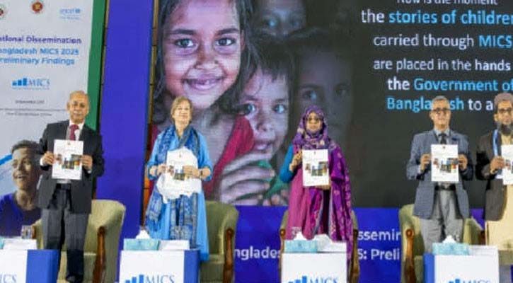 ইউনিসেফ ও অন্যান্য অংশীদারদের সহযোগিতায় বাংলাদেশ পরিসংখ্যান ব্যুরো দেশে শিশু ও নারীদের ওপর পরিচালিত সবচেয়ে বিস্তারিত জরিপ এমআইসিএস-২০২৫ এর প্রাথমিক ফলাফল প্রকাশ করেছে। বিবিএসের মহাপরিচালক মোহাম্মদ মিজানুর রহমান এবং বাংলাদেশে ইউনিসেফের প্রতিনিধি রানা ফ্লাওয়ার্স অনুষ্ঠানে উপস্থিত ছিলেন।