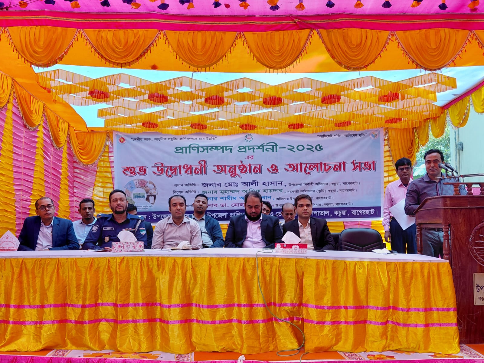 খান সুমন,কচুয়া: দেশীয় জাত, আধুনিক প্রযুক্তি প্রাণিসম্পদে হবে উন্নতি এই প্রতিপাদ্য বিষয়কে সামনে রেখে বাগেরহাটের কচুয়ায় প্রাণিসম্পদ প্রদর্শনী -২০২৫ এর শুভ উদ্বোধনী অনুষ্ঠান ও আলোচনা সভা অনুষ্ঠিত হয়েছে। বুধবার (২৬ নভেম্বর) সকালে বর্ণাঢ্য র্যালির মধ্যে দিয়ে অনুষ্ঠানের শুভ সূচনা হয়। এদিন উপজেলা প্রাণিসম্পদ অধিদপ্তরের সামনে প্রাণিসম্পদ ও ডেইরী উন্নয়ন প্রকল্প (এলডিডিপি) এর সহযোগিতায় উপজেলা প্রশাসন,উপজেলা প্রাণী সম্পদ অধিদপ্তর ও ভেটোনারি হাসপাতাল এর আয়োজনে উপজেলা প্রানী সম্পদ কর্মকর্তা ডা. মোহাম্মদ আলী'র সভাপতিত্বে প্রধান অতিথি হিসেবে প্রদর্শনী মেলার শুভ উদ্বোধন করেন কচুয়া উপজেলা নির্বাহী অফিসার মোঃ আলী হাসান।