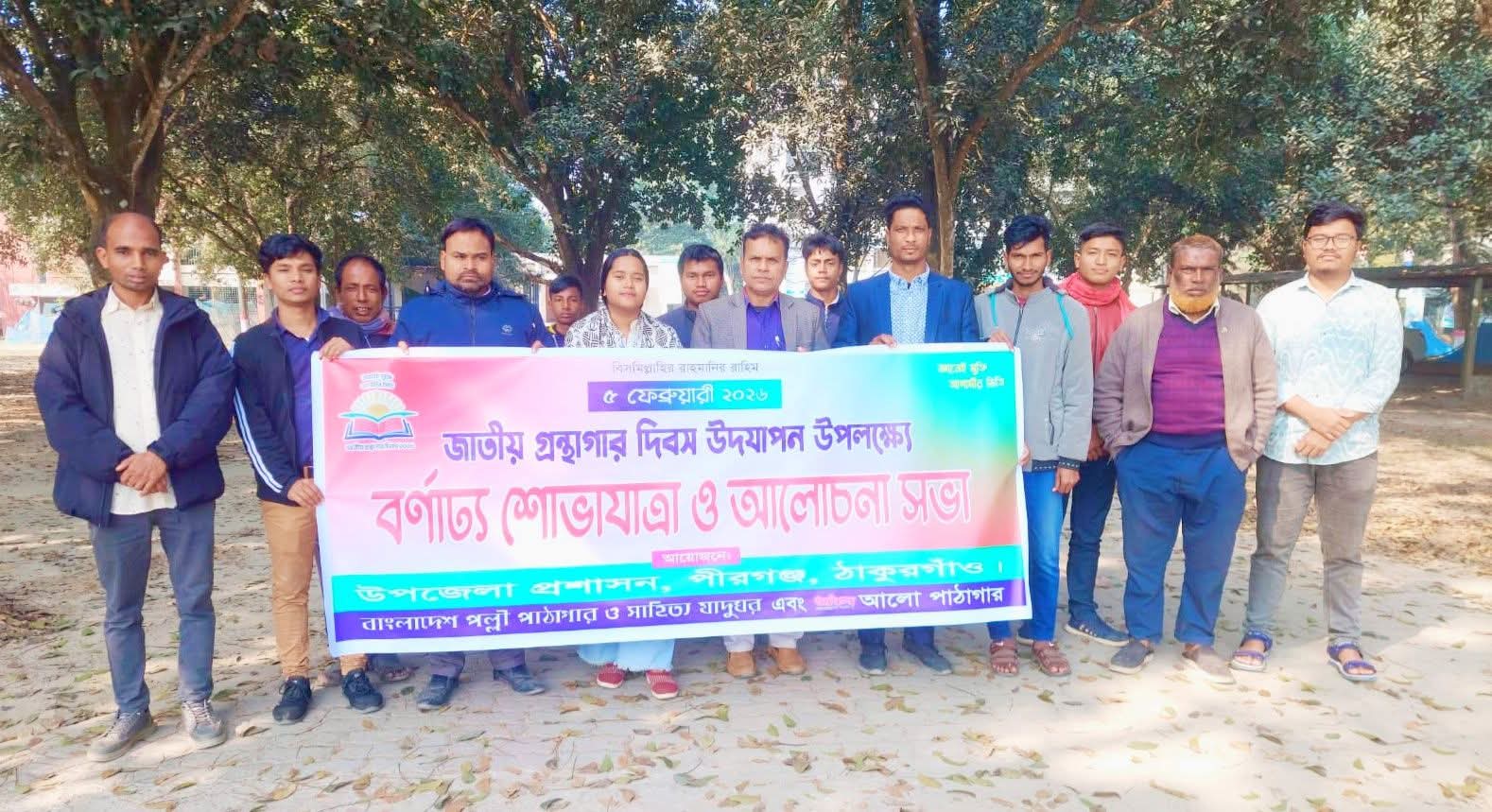 মো. রেজাউল করিম, ঠাকুরগাঁও : “জ্ঞানেই মুক্তি, আগামীর ভিত্তি” প্রতিপাদ্যকে সামনে রেখে ঠাকুরগাঁওয়ের পীরগঞ্জে জাতীয় গ্রন্থাগার দিবস উদযাপন করা হয়েছে। বৃহস্পতিবার (৫ ফেব্রুয়ারি) উপজেলা প্রশাসনের সহায়তায় বাংলাদেশ পল্লী পাঠাগার ও সাহিত্য যাদুঘর এবং আলো পাঠাগারের যৌথ উদ্যোগে উপজেলা প্রাঙ্গন থেকে একটি বর্ণাঢ্য শোভাযাত্রা বের করা হয়, যা প্রধান সড়ক প্রদক্ষিণ করে।