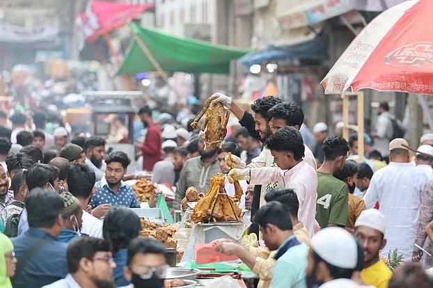 প্রভাত রিপোর্ট: পুরান ঢাকার ঐতিহ্যবাহী চকবাজারে রমজানের প্রথম দিনই ইফতারসামগ্রীর বাজার জমজমাট হয়ে উঠেছে। ক্রেতা–বিক্রেতার ভিড়ে মুখর হয়ে ওঠে শাহি মসজিদের সামনে সার্কুলার রোডের দুই পাশজুড়ে গড়ে ওঠা ঐতিহ্যবাহী এই ইফতারির বাজার। দাম আগের মতো হলেও কয়েকটি পদের ইফতারির দাম কিছুটা বাড়তি বলে অভিযোগ আছে ক্রেতাদের। বৃহস্পতিবার জোহরের নামাজের পরই দেখা যায়, দোকানিরা নানা পদের ইফতারির পসরা সাজিয়ে বসেছেন। হাজারো ক্রেতা সেখানে ভিড় করছেন পছন্দের পদের ইফতারি কিনতে।