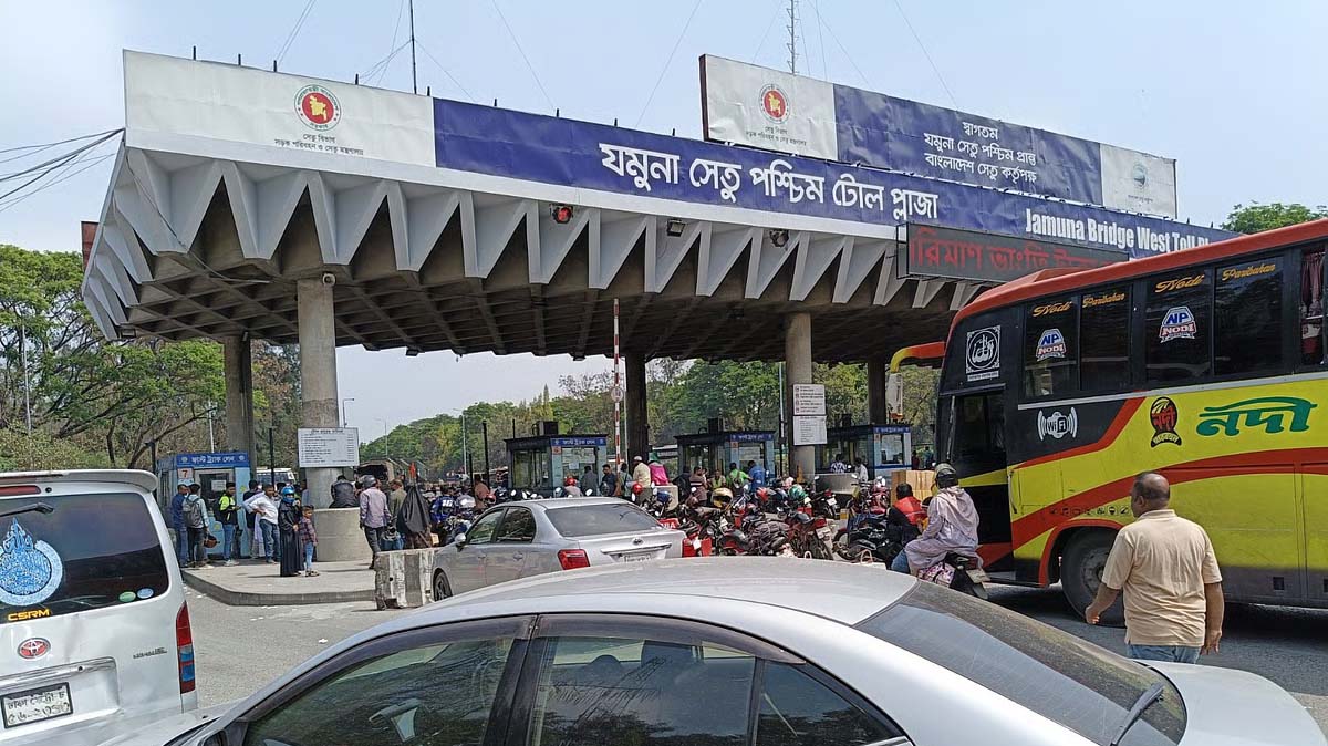 এরপর যমুনা সেতুর টোল প্লাজা অবধি বাস আর নড়েই না। সারি সারি যানবাহন পথে থমকে দাঁড়িয়ে আছে। ঘড়ির কাঁটা নিজ গতিতে ছুটছে, আর আমরা আটকে আছি একই জায়গায়। এর মাঝে দেখলাম, উল্টো লেন ধরে উত্তরের পথে শাঁই শাঁই করে ছুটে চলেছে বাস, যাত্রীসহ পিকআপ।