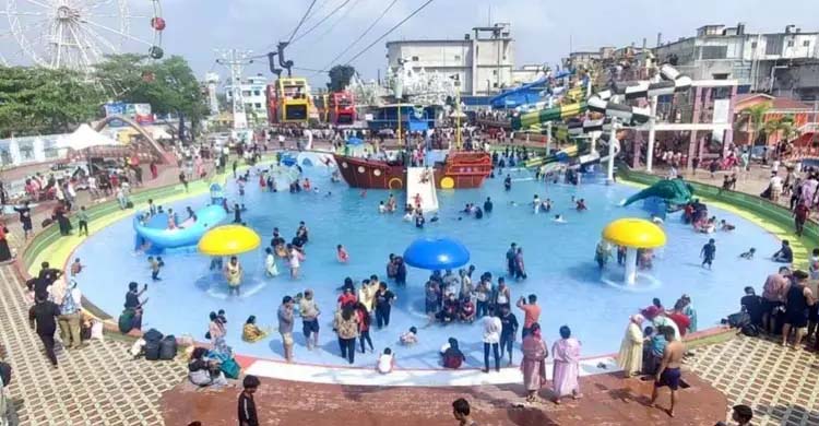 নরসিংদীর ড্রিম হলিডে পার্কে দর্শনার্থীদের উপচে পড়া ভিড়