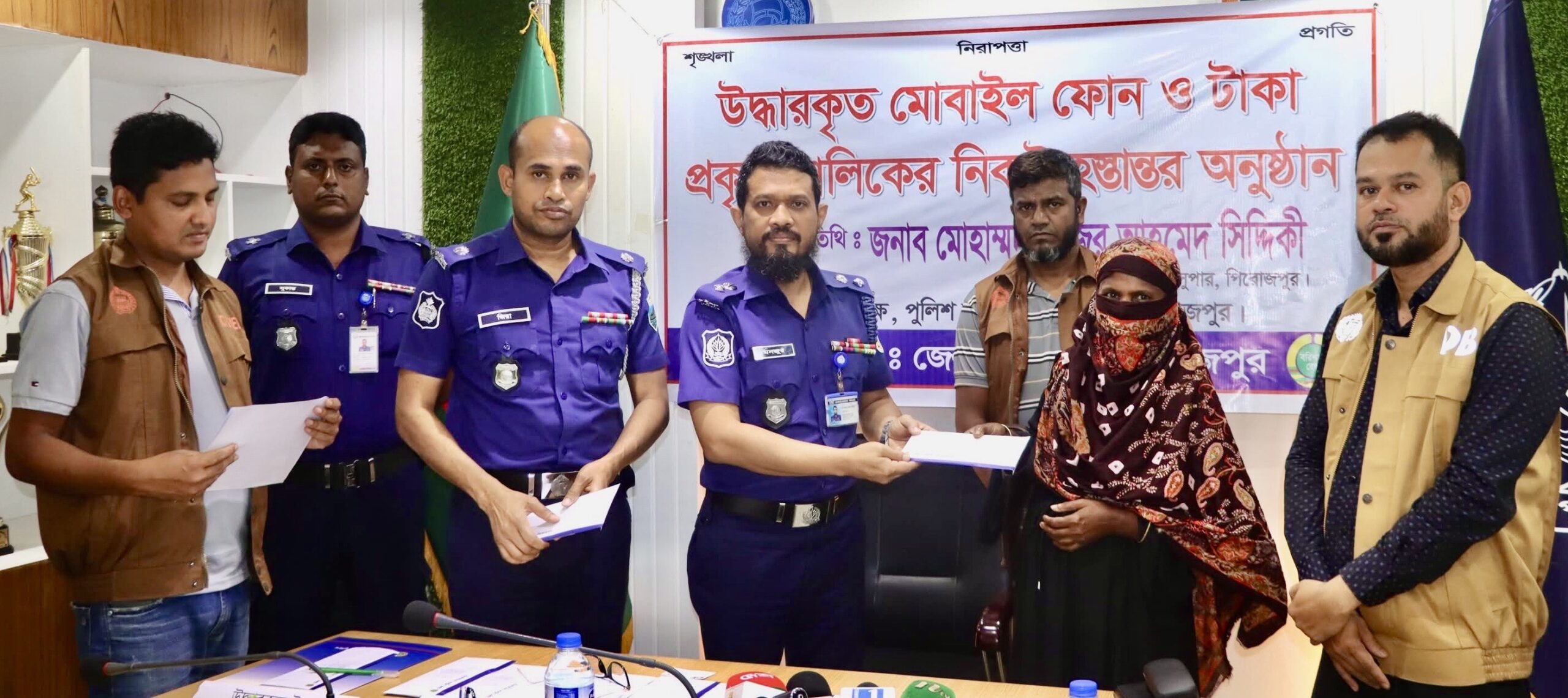 পিরোজপুরে হারানো ২০টি মোবাইল ও বিকাশ প্রতারণার ২০ হাজার টাকা উদ্ধার