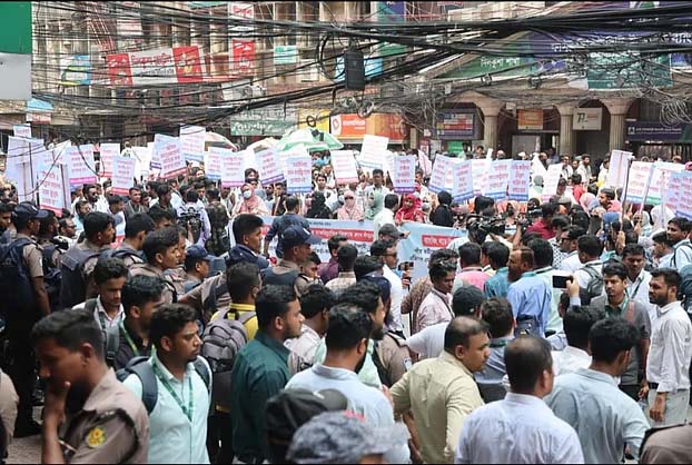 সমাবেশ থেকে বক্তারা তিন দফা দাবি পেশ করেন। এক. অবিলম্বে সব চাকরিচ্যুত কর্মীকে স্বপদে বহাল করতে হবে। দুই. বকেয়া বেতন-ভাতা পরিশোধ করতে হবে। তিন. ভবিষ্যতে যেন কোনো পেশাজীবী এভাবে বৈষম্যের শিকার না হন, তার আইনি নিশ্চয়তা দিতে হবে।