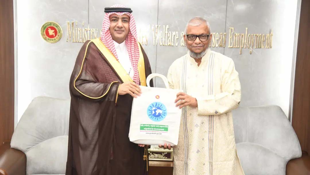 মন্ত্রী আরও বলেন, যাচাইকৃত ও দক্ষ কর্মীদের একটি ডিজিটাল ডাটাবেজ বা ‘কোয়ালিফাইড ট্যালেন্ট ব্যাংক’ তৈরি করা প্রয়োজন, যা নিয়োগ প্রক্রিয়াকে কয়েক সপ্তাহ থেকে মাত্র কয়েক দিনে নামিয়ে আনবে। জনশক্তি নিয়োগে যেকোনো ধরনের অবৈধ লেনদেন, অনিয়ম বা কর্মী হয়রানির বিরুদ্ধে বর্তমান সরকারের ‘জিরো টলারেন্স’ নীতির কথা তিনি রাষ্ট্রদূতকে স্পষ্টভাবে অবহিত করেন। এ ছাড়া সৌদিতে দক্ষ শ্রমিক প্রেরণের পাশাপাশি হোয়াইট কলার চাকরিতে কর্মী নেওয়ার জন্য রাষ্ট্রদূতকে আহ্বান জানান তিনি।
