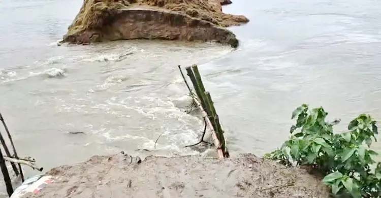 মঙ্গলবার (২৮ এপ্রিল) সকালে উপজেলার বংশীকুন্ডা দক্ষিণ ইউনিয়নের হামিদপুর গ্রামের কাছে সুরেশ্বরী নদীর শাখা নদী মনাই নদীর পানির চাপে এরনবিলের খালের এই বাঁধটি ভেঙে যায়।