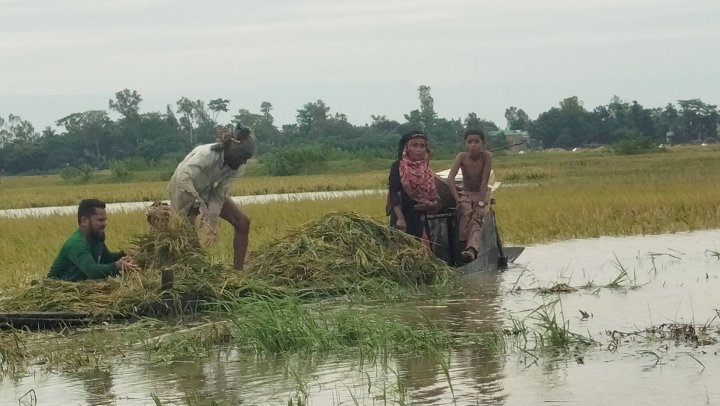 সদর উপজেলার মোল্লাপাড়া ইউনিয়নের ইচাগরি গ্রামের আতাহার আলী দুই লাখ টাকার বেশি খরচ করে ২৪ বিঘা জমিতে উফশী ও হাইব্রিড ধান আবাদ করেন। এরই মধ্যে বৃষ্টিতে চার বিঘার ধান কাঁচাই তলিয়ে যায়। এ ছাড়া চাষের শুরুতে শিলাবৃষ্টি ও বৈরী আবহাওয়ায় ধানের ফলন অনেক কম হয়েছে। এরপরও আশা করছিলেন ৩৫০ মণ পাবেন। বৃষ্টিতে ডুবে যাওয়ায় এখন দেড় থেকে ২০০ মণের আশা করছেন। এসব ধান কাটাতে শ্রমিকের মজুরি লাগবে অন্তত এক লাখ টাকা। সবমিলিয়ে এবার তার খরচই উঠবে না তার।