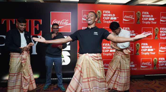 প্রভাত স্পোর্টস: ২০২৬ বিশ্বকাপের আগে বিশ্বকাপ ট্রফি বিশ্ব প্রদক্ষিণ করছে। এরই অংশ হিসেবে ঢাকায় এসেছে। বিশ্বকাপ ট্রফির সঙ্গে ঢাকায় এসেছেন ব্রাজিলের বিশ্বকাপজয়ী ফুটবলার গিলবার্তো সিলভা। ২০০২ বিশ্বকাপজয়ী এই মিডফিল্ডার বাংলাদেশের