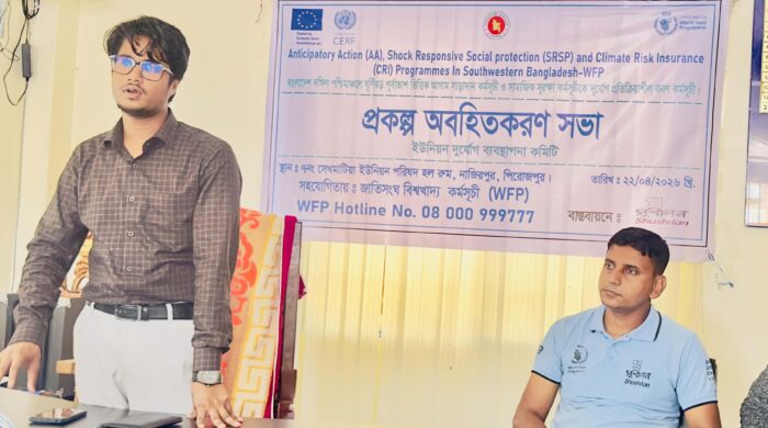 প্রভাত সংবাদদাতা, পিরোজপুর : পিরোজপুরের নাজিরপুর উপজেলার ৭নং সেখমাটিয়া ইউনিয়ন পরিষদ হলরুমে ঘূর্ণিঝড় পূর্বাভাসভিত্তিক আগাম সাড়াদান কর্মসূচী ও সামাজিক সুরক্ষা কর্মসূচীকে দুর্যোগ প্রতিক্রিয়াশীল করার লক্ষ্যে এক প্রকল্প অবহিতকরণ সভা অনুষ্ঠিত