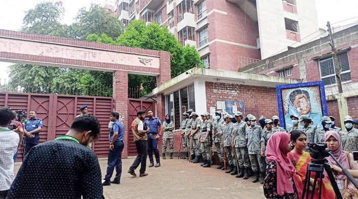 প্রভাত রিপোর্ট: জাহাঙ্গীরনগর বিশ্ববিদ্যালয় কেন্দ্রীয় ছাত্র সংসদ (জাকসু) নির্বাচনের ভোটগ্রহণ চলছে। নির্বাচনী ভোটকেন্দ্রগুলোতে প্রার্থীদের প্রবেশ করা নিয়ে একাধিক হলে হট্টগোলের ঘটনা ঘটেছে। হট্টগোলের জেরে ছাত্রীদের একটি হলে ভোটগ্রহণ বন্ধ রয়েছে।