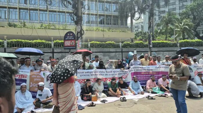 প্রভাত রিপোর্ট: হতাশা আর ক্ষোভ নিয়ে বাংলাদেশ ব্যাংকের সামনে অবস্থান কর্মসূচি পালন করেছেন শরিয়াহভিত্তিক পাঁচটি ব্যাংক ও পদ্মা ব্যাংকের ভুক্তভোগী আমানতকারীরা। মঙ্গলবার (৭ এপ্রিল) বাংলাদেশ ভুক্তভোগী ব্যাংক আমানতকারী অ্যাসোসিয়েশনের ব্যানারে