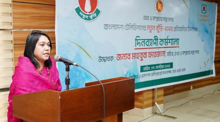 প্রভাত রিপোর্ট: তথ্য ও সম্প্রচার মন্ত্রণালয়ের সচিব মাহবুবা ফারজানা বলেছেন, শিশু-কিশোরদের মেধা অন্বেষণের বড়ো প্ল্যাটফর্ম হচ্ছে ‘নতুন কুঁড়ি’ প্রতিযোগিতা। এই প্রতিযোগিতাকে স্বচ্ছ ও অন্তর্ভুক্তিমূলক করতে মন্ত্রণালয় ও বিটিভি কর্তৃপক্ষ আন্তরিকভাবে