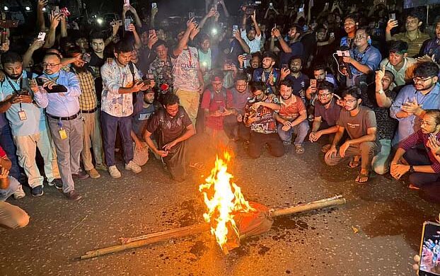 প্রভাত রিপোর্ট: রাজধানীর মৎস্যভবন মোড়ে সড়কে অবস্থান নিয়ে এক ঘণ্টা বিক্ষোভ করেছেন আন্দোলনরত প্রকৌশল শিক্ষার্থীরা। এ সময় তাঁরা ঢাকা মহানগর পুলিশের (ডিএমপি) রমনা বিভাগের উপকমিশনার (ডিসি) মাসুদ আলমের কুশপুতুল পুড়িয়েছেন।