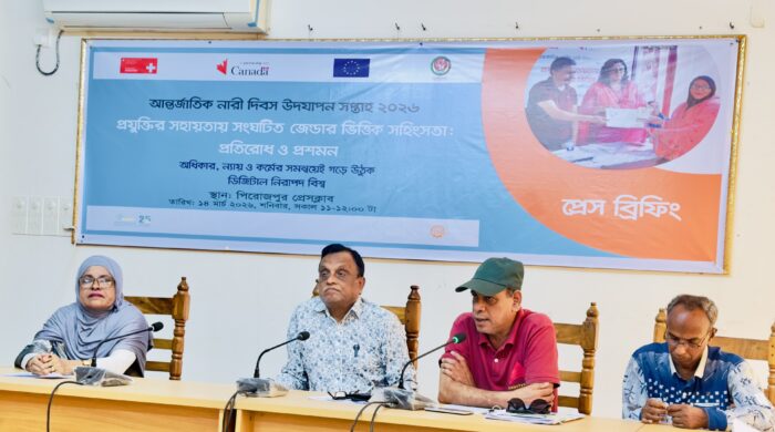 প্রভাত সংবাদদাতা,পিরোজপুর: আন্তর্জাতিক নারী দিবস উদযাপন সপ্তাহ ২০২৬ উপলক্ষে পিরোজপুরে প্রযুক্তির সহায়তায় সংঘটিত জেন্ডারভিত্তিক সহিংসতা প্রতিরোধ ও প্রশমন বিষয়ক এক প্রেস ব্রিফিং অনুষ্ঠিত হয়েছে। “প্রতিরোধ ও প্রশমন—অধিকার, ন্যায় ও কর্মের